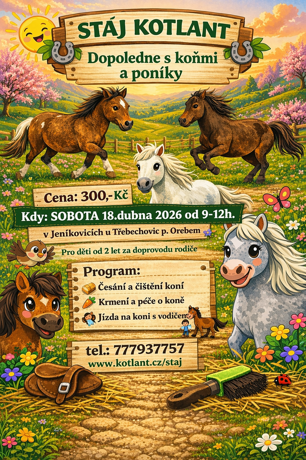 V ceně je zahrnuto: ježdění na ponících a koních včetně zapůjčení sedlového